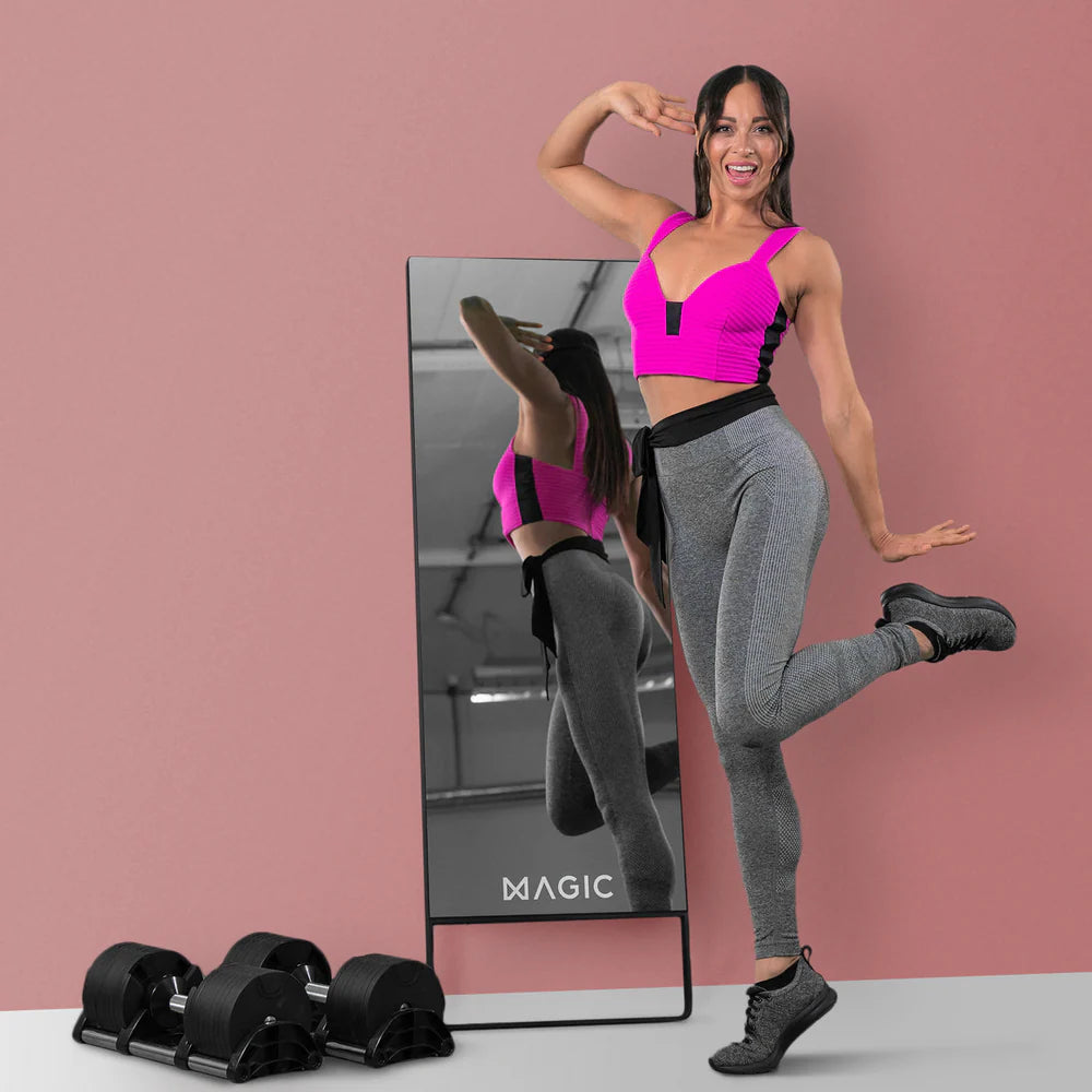 Equipped with motion sensors, a touchscreen interface, and an ultra-thin HD display, the Magic Mirror is a true tech masterpiece. The AI learns from your progress and adapts your program accordingly. Every session is personalized, dynamic, and measurable.